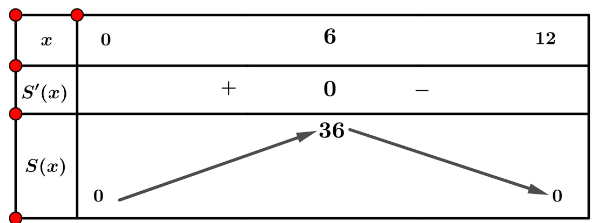 Ta có: S'(x) = 12 - 2x; S'(x) = 0 ⇔ x = 6