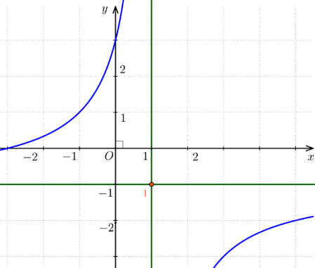 Do đó, đồ thị của hàm số có tiệm cận đứng là đường thẳng x = 1, tiệm cận ngang là đường thẳng y = - 1.