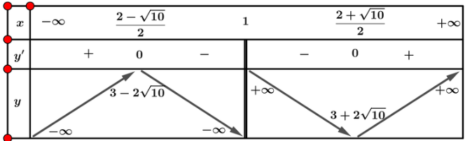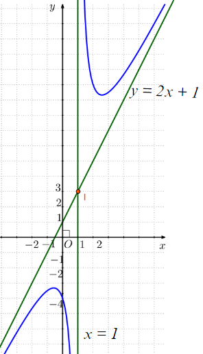 Do đó, đồ thị hàm số có tiệm cận đứng là đường thẳng x = 1 và tiệm cận xiên là đường thẳng y = 2x + 1