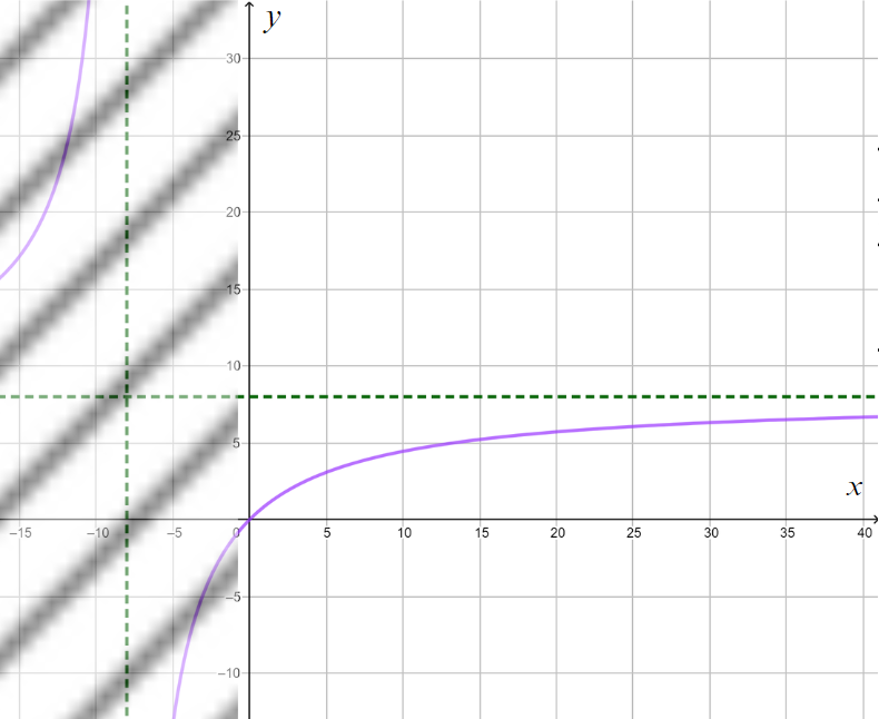 Do đó, đồ thị hàm số có tiệm cận đứng là đường thẳng x = - 8 và tiệm cận ngang là đường thẳng y = 8.