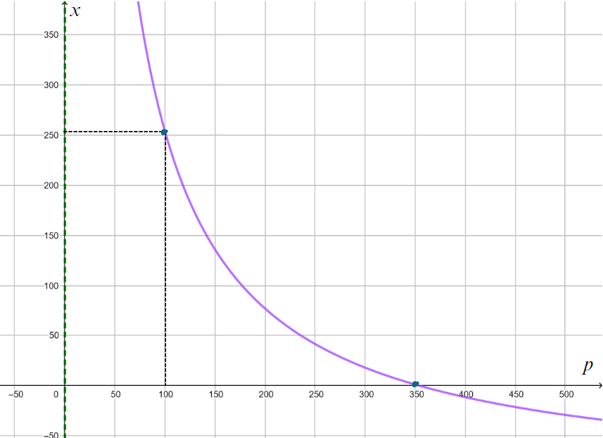 b) Khảo sát sự biến thiên và vẽ đồ thị của hàm số x = x(p). Từ đồ thị đã vẽ, hãy cho biết: