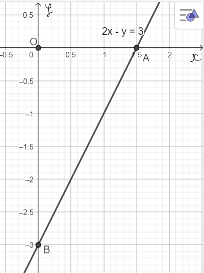 Ta biểu diễn hình học tất cả các nghiệm của phương trình bậc nhất hai ẩn 2x – y = 3 như sau: