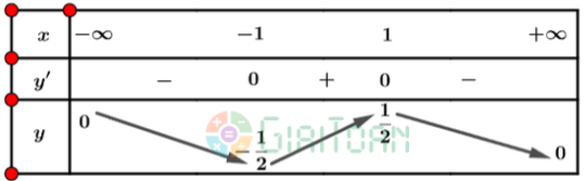 ; y' > 0 với x ∈ (- 2; 0) và y' < 0 với (0; 2)