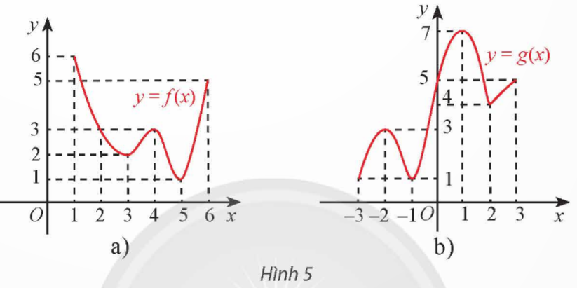 Bài 1 trang 18 toán 12 tập 1: Tìm giá trị lớn nhất và giá trị nhỏ nhất của hàm số có đồ thị được cho ở Hình 5.