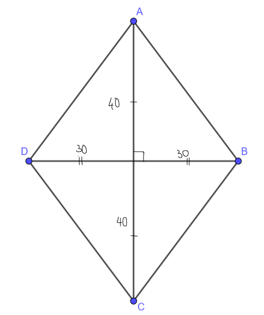 Bài 1 (sgk trang 88): Bạn Nam dùng 6 đoạn tre vót thẳng để làm khung diều hình thoi. Trong đó 2 đoạn tre dài 60 cm và 80 cm để làm đường chéo của cái diều, 4 đoạn tre còn lại là 4 cạnh của cái diều. Khi đó tổng độ dài 4 đoạn tre dùng làm cạnh của cái diều hình thoi là A. 5 m B. 1 m C. 1.5 m D. 2 m |