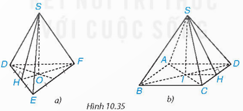 Bài 10.19 (sgk trang 123): Gọi tên đỉnh, cạnh bên, cạnh đáy, đường cao và một trung đoạn của hình chóp tam giác đều, hình chóp tứ giác đều trong Hình 10.35.