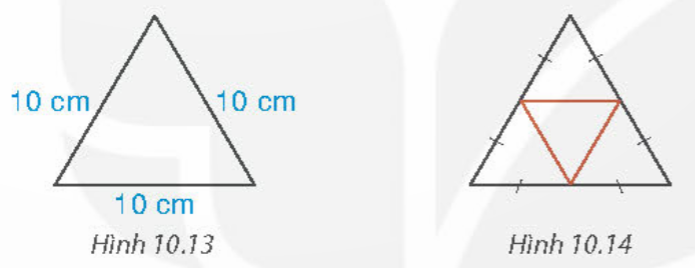 Bài 10.2 (sgk trang 116): Vẽ và cắt một tam giác đều có cạnh 10 cm (H10.13) rồi gấp theo đường màu cam để được hình chóp tam giác đều (H.10.14).