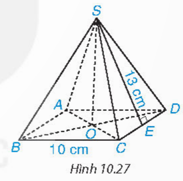 Bài 10.8 (sgk trang 120): Cho hình chóp tứ giác đều S.ABCD có độ dài cạnh đáy bằng 10 cm, trung đoạn bằng 13 cm (H.10.27).