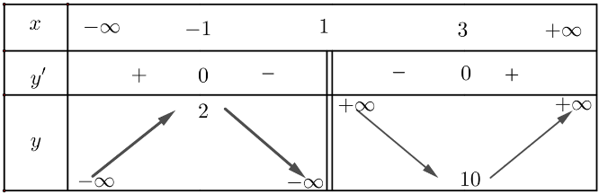 Hàm số đạt cực tiểu tại x = 3 và yCT = 10