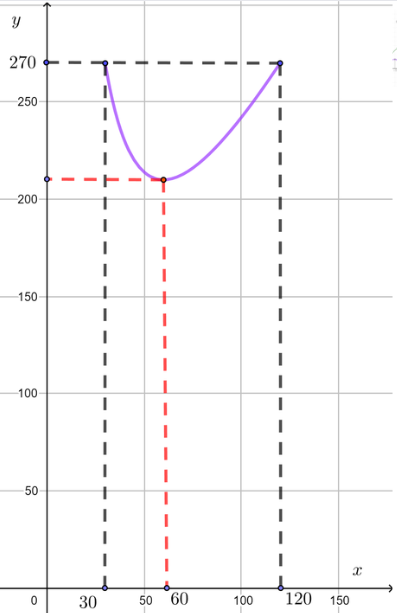 Điểm cực tiểu của đồ thị hàm số là (60; 210).