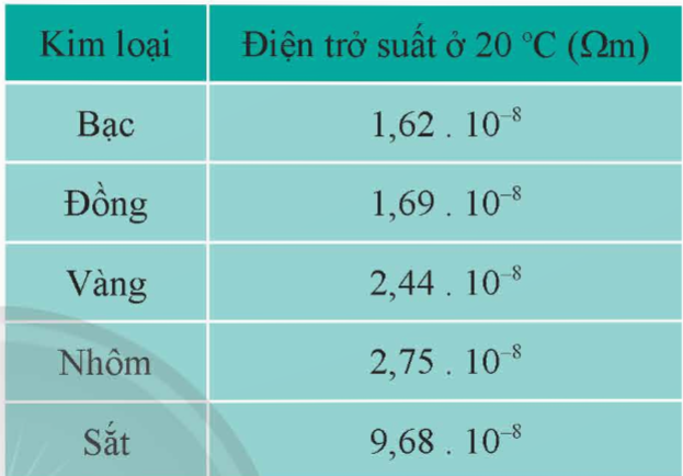 của dây điện. Từ đó, hãy cho biết dây điện được làm bằng kim loại nào trong số các kim loại được cho ở bảng sau: