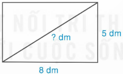 Bài 2.11 trang 32 Toán 7 tập 1: Biết rằng bình phương độ dài đường chéo của một hình chữ nhật bằng tổng các bình phương độ dài hai cạnh của nó. Một hình chữ nhật có chiều dài 8 dm và chiều rộng là 5 dm. Độ dài đường chéo của hình chữ nhật đó bằng bao nhiêu đềximét (làm tròn đến kết quả hàng phần mười)?