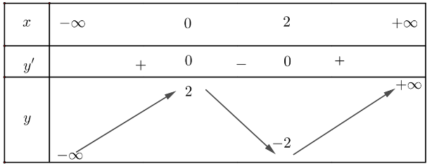 Hàm số đạt cực đại tại x = 2 và yCT = - 2