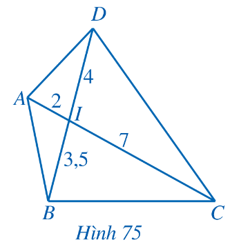 Bài 2 (sgk trang 82): Cho Hình 75, chứng minh: a) ∆ IAB ∽ ∆ IDC; b) ∆ IAD ∽ ∆ IBC.