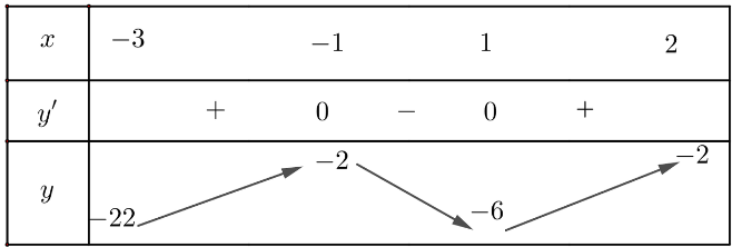y' = 0 ⇔ x = - 1 hoặc x = 1