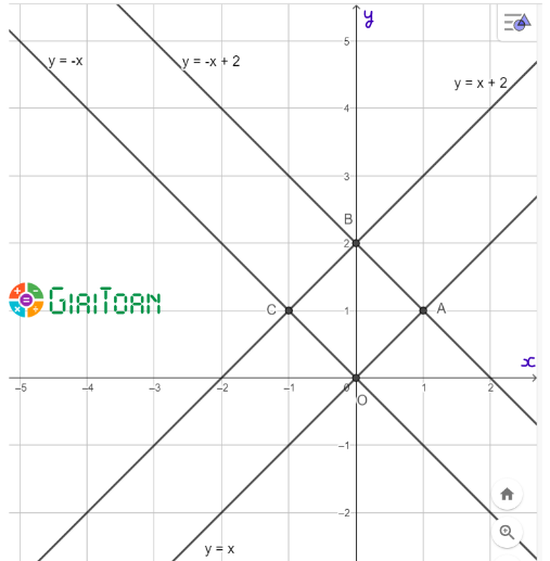 Đồ thị hàm số y = − x + 2 đi qua các điểm B (0; 2) và A(1; 1).