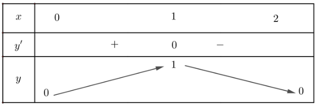 Xét hàm số y = S(x) = 2x - x2 (0 < x < 2)
