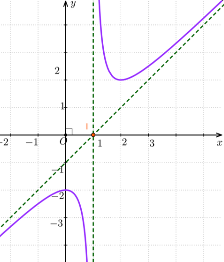 Suy ra đường thẳng y = x - 1 là tiệm cận xiên của đồ thị hàm số.