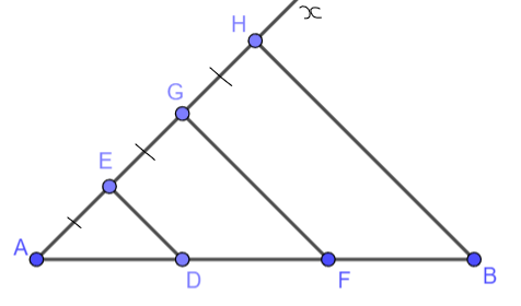Trong tam giác ABH, kẻ đường thẳng qua E song song với cạnh HB, cắt cạnh AB tại D; kẻ đường thẳng qua G song song với cạnh HB, cắt cạnh AB tại F