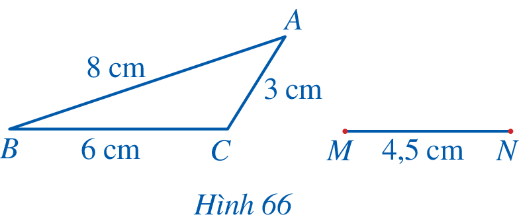 Bài 5 (sgk trang 78): Bạn Hoa vẽ trên giấy một tam giác ABC và đoạn thẳng MN với các kích thước như Hình 66. Bạn Hoa đố bạn Thanh vẽ điểm P thỏa mãn
