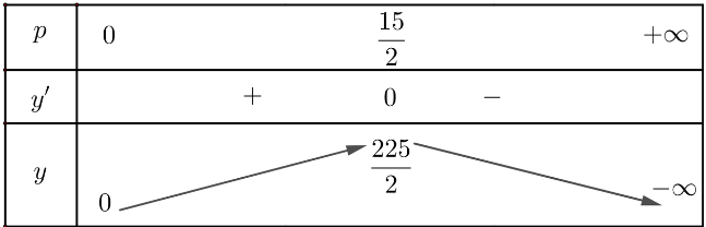 Ta có: y' = 30 - 4p; y' = 0 ⇔ ![]()