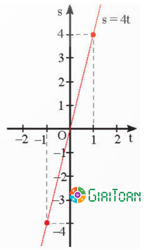 Đồ thị hàm số s = 4t là đường thẳng đi qua các điểm O(0; 0) và A(1; 4).