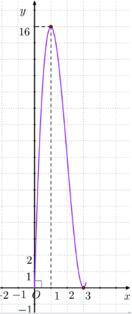 - Cực trị: Hàm số đạt cực đại tại x = 1 và yCĐ = 16.