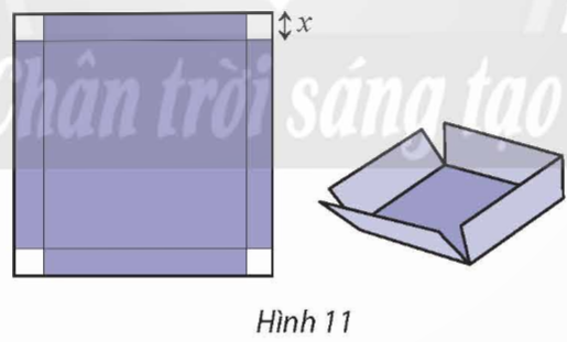 Bài 6 trang 36 toán 12 tập 1: Bạn Việt muốn dùng tấm bìa hình vuông cạnh 6 dm làm một chiếc hộp không nắp, có đáy là hình vuông bằng cách cắt bỏ đi 4 hình vuông nhỏ ở bốn góc của tấm bìa (Hình 11).