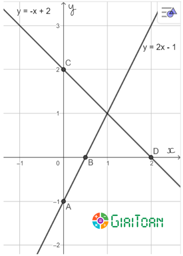 Bài 7.36 (sgk trang 56): Cho hai hàm số y = 2x - 1 và y = - x + 2. a) Trong cùng mặt phẳng tọa độ Oxy, vẽ đồ thị của hai hàm số đã cho b) Tìm tọa độ giao điểm của hai đồ thị trên. |