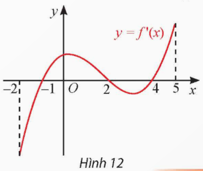Bài 7 trang 13 toán 12 tập 1: Đạo hàm f'(x) của hàm số y = f(x) có đồ thị như Hình 12. Xét tính đơn điệu và tìm điểm cực trị của hàm số y = f(x).