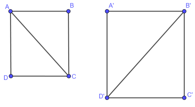 Bài 9.26 (sgk trang 103): Cho hai hình chữ nhật ABCD và A'B'C'D' thỏa mãn AC = 3AB, B'D'= 3A'B'. a) Chứng minh rằng ∆ABC ∽ ∆A'B'C'. b) Nếu A'B' = 2AB và diện tích hình chữ nhật ABCD là 2m2 thì diện tích hình chữ nhật A'B'C'D' là bao nhiêu? |