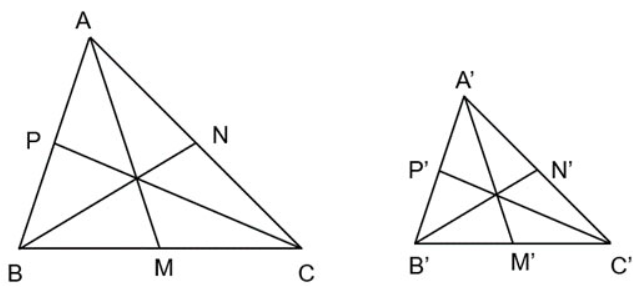 Bài 9.7 (sgk trang 90): Cho AM, BN, CP là các đường trung tuyến của tam giác ABC. Cho A'M', B'N', C'P' là các đường trung tuyến của tam giác A'B'C'. Biết rằng ΔA'B'C' ∽ ΔABC. Chứng minh rằng |