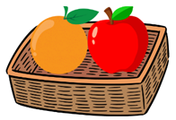 a) Quả táo ở bên phải quả cam.