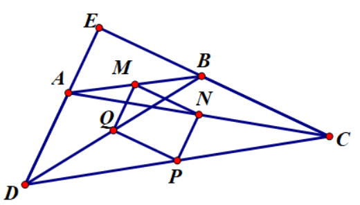và AD = BC. Gọi M, N, P, Q lần lượt là trung điểm của AB, AC, CD, BD. Chứng minh rằng MNPQ là hình vuông