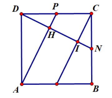 Ví dụ 1: Cho hình vuông ABCD. Gọi P, Q lần lượt là trung điểm của AB, CD. Đoạn thẳng CP cắt DQ tại I