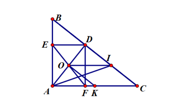 Câu 4: Cho tam giác ABC vuông tại A ( AB < AC ), đường cao AD. Từ D kẻ DE và DF vuông góc với AB và AC. Gọi I và K là trung điểm của DC và KC
