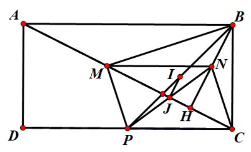 Câu 3: Cho hình chữ nhật ABCD có AB = 2AD. Vẽ BH vuông góc với AC. Gọi M, N, P lần lượt là trung điểm của AH, BH, CD