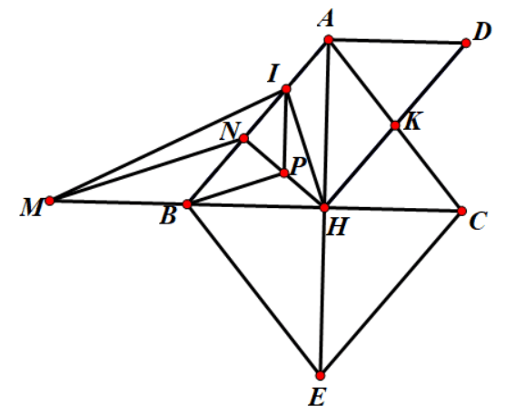 , gọi I là trung điểm của AN. Trên tia đối của tia BH lấy điểm M sao cho B là trung điểm của HM. Chứng minh ![]()