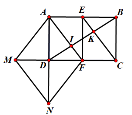 d) Gọi I,K là giao điểm của BD với AF, EF. Chứng minh