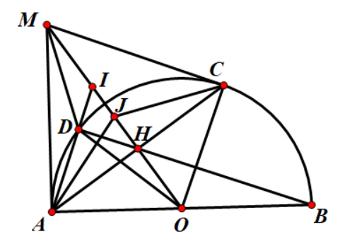 Từ (*) và (**) ta được AJ = MJ = JO = CJ nên A, M, J cùng thuộc 1 đường tròn