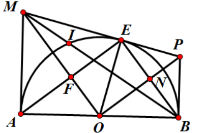 c) Gọi N là trung điểm của EB. Tia ME cắt ON tại P. Tìm vị trí của điểm M trên Ax để diện tích tam giác OMP đạt giá trị nhỏ nhất.