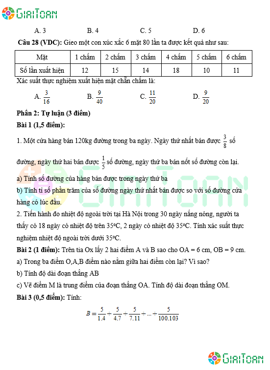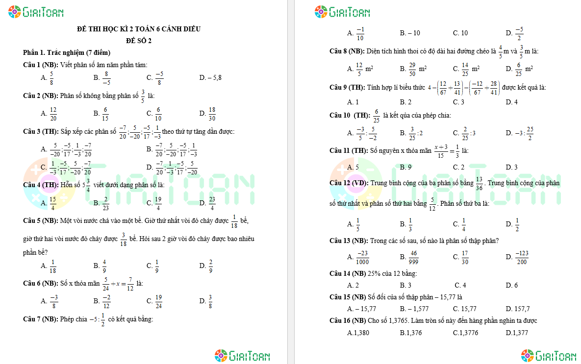 Đề thi học kì 2 Toán 6 Cánh Diều - Đề số 2 DownloadCác phiên bản khác và liên quan: