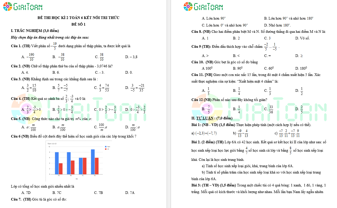 Đề thi học kì 2 Toán 6 Kết nối tri thức - Đề số 1 DownloadCác phiên bản khác và liên quan: