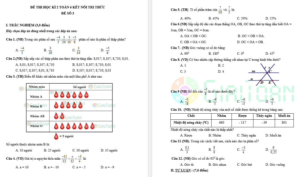 Đề thi học kì 2 Toán 6 Kết nối tri thức - Đề số 3 DownloadCác phiên bản khác và liên quan: