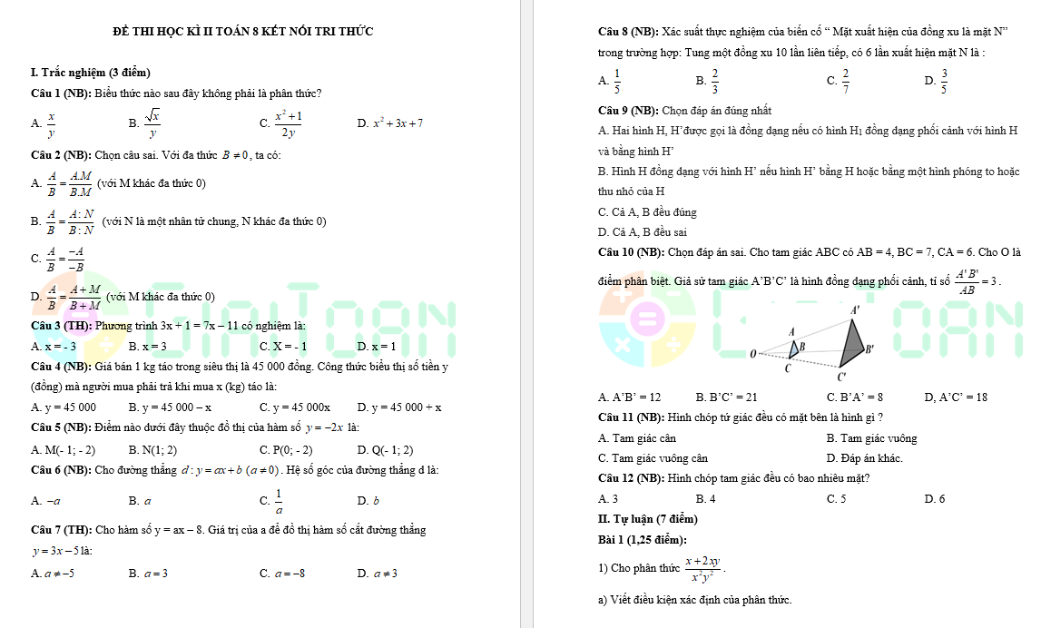 Đề thi học kì 2 Toán 8 Kết nối tri thức - Đề số 1 DownloadCác phiên bản khác và liên quan: