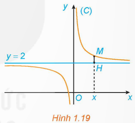 có đồ thị (C). Với x > 0, xét điểm M(x; f(x)) thuộc (C). Gọi H là hình chiếu vuông góc của M trên đường thẳng y = 2 (H.1.19).