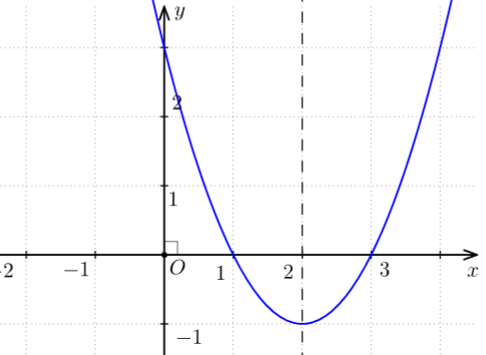- Đồ thị hàm số có trục đối xứng là đường thẳng x = 2.