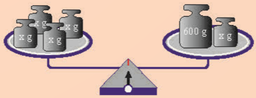 Biểu thức biểu thị tổng khối lượng của các vật trên đĩa cân bên phải là: 600 + x (g)
