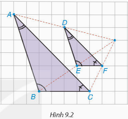 Hoạt động 1 (sgk trang 79): Trong hình 9.2, ΔABC và ΔDEF là hai tam giác có các cạnh tương ứng song song và các góc tương ứng bằng nhau, tức là AB // DE, AC // DF, BC // EF và Nhìn hình vẽ, hãy cho biết giá trị của mỗi tỉ số sau:
