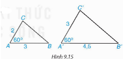Hoạt động 2 (sgk trang 85): Cho hai tam giác ABC và A'B'C' có độ dài các cạnh (theo đơn vị cm) như Hình 9.15. Biết rằng